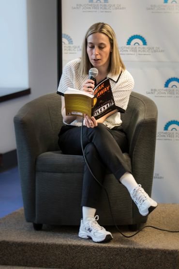 On October 9th 2025, at the Market Square Public Library in Saint John New Brunswick Canada; Julia Wright hosted the book launch for Canadian writer Karissa Donkin, discussing her upcoming book titled "Break Away" published by Goose Lane Editions.